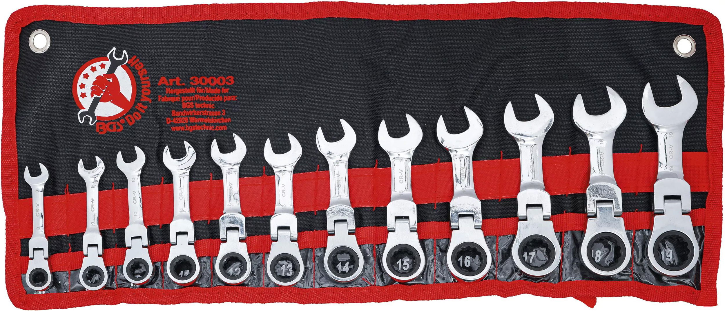 BGS Do it yourself 9-30003 csillag-villáskulcs készlet, rövid, 72-fogú racsnis-csuklós, metrikus, 12 részes