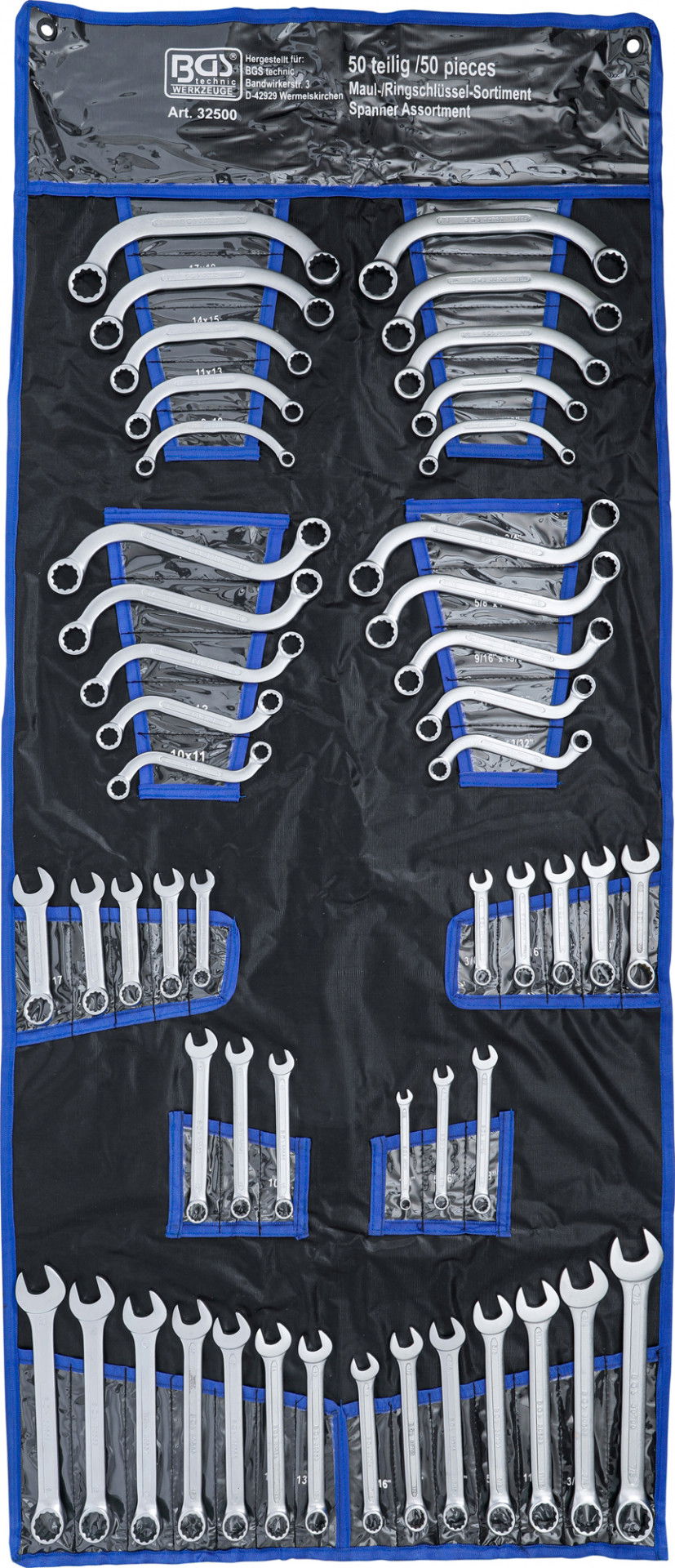 BGS Technic 9-32500 csillag-villáskulcs és csillagkulcs készlet, metrikus és colos, 50 részes